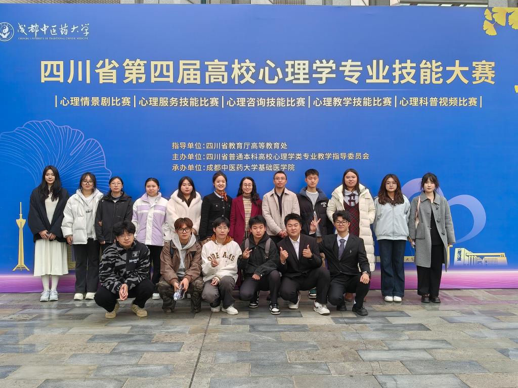 近日,四川省第四届高校心理学专业技能大赛在成都中医药大学举行,来自省内16所高校的137支参赛队伍进入决赛。经过激烈角逐,我院学生在多个赛项中表现突出,共获二等奖2项、三等奖4项、优秀奖4项。在心理情景剧赛道中,蒋宴熙小组作品《错影》荣获二等奖,刘慧兰小组作品《向阳而生》荣获三等奖;在教学技能大赛中,王雨杉荣获二等奖,勒勒牛牛荣获三等奖;在心理科普视频赛道中,作品方馨、赖言的作品《MBTI不是人生说明书!...