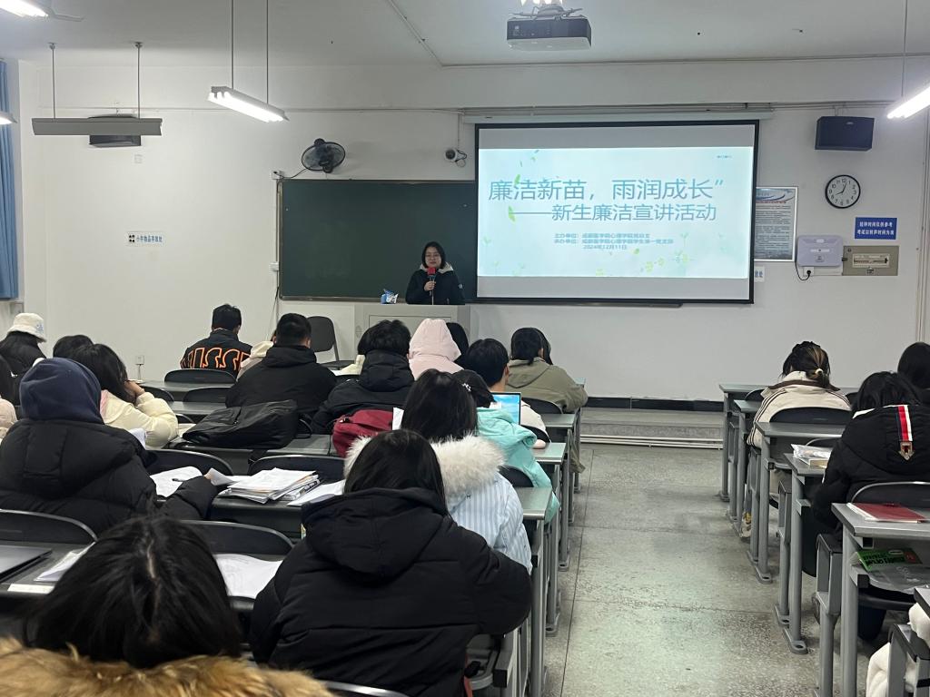 宣讲入心,播撒廉洁种子。为深化廉洁教育效果,学院党总支开展了“廉洁新苗,雨润成长”新生廉洁宣讲活动。学生党员代表深入新生班级,以生动的案例和通俗易懂的语言,向新生们阐述了廉洁的重要性以及在大学生活中如何践行廉洁自律。从诚信考试到节约自律,从学生干部的公正履职到普通同学的日常行为规范,宣讲内容全面覆盖,引导新生在入学之初就树立廉洁意识,为未来的成长奠定坚实的思想基础。