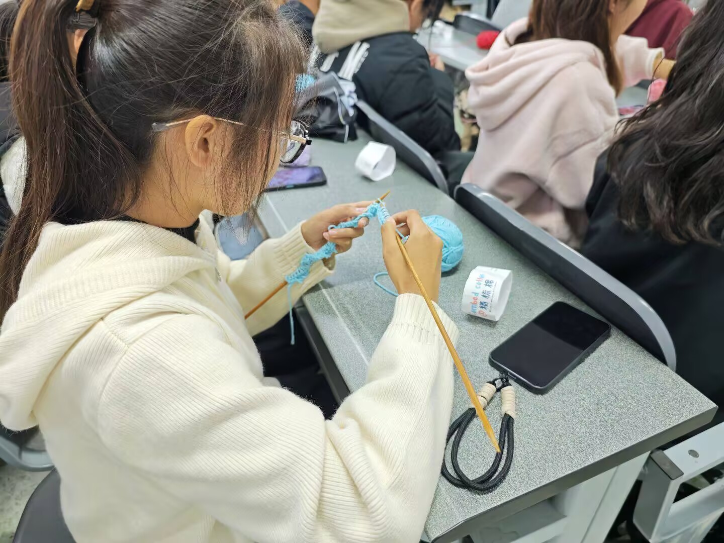 活动过程中,大家彼此协助,场面温馨而融洽。同学们通过亲手织作围巾,不仅习得新技能,更体会到“赠人围巾,手有余温”的公益关怀。围巾成品将被赠予有需要之人,传递校园温暖与社会温情。