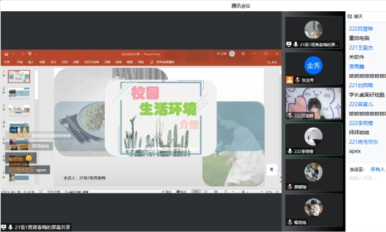 2021级1班生活委员蒋春梅结合常用APP给大家介绍了学校的生活环境与生活日常,希望大家可以度过愉快充实有意义的大学四年。