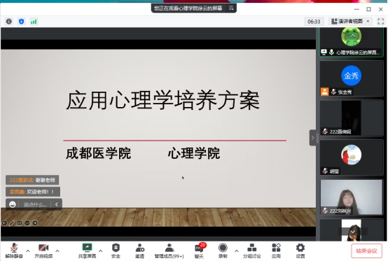 专业老师徐云则进一步给同学们讲解了最新版的人才培养方案。工欲善其事,必先利其器。徐老师指出我们医学院校的应用心理学学生,有着充分学习医学课程的优势,希望同学们在日后的学习中,医学与心理学并重,综合素质与专业技能同步提升。