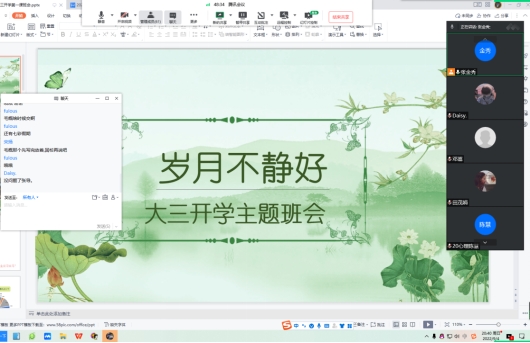 为做好新学期各项开学准备,引导学生在做好疫情防控的基础上学好网课,9月4日至9月5日,ok138cn太阳集团辅导员通过腾讯会议给老生各班召开了开学第一堂线上班会。
