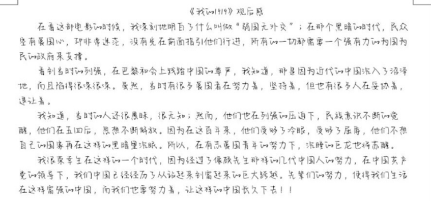广大青年团员们通过腾讯会议一起观看了《我的1919》电影片段,回顾了中国青年运动的华章。影片结束后,主持人就影片内容提出小问题,参与者积极抢答,有的还主动分享了观影感悟。最后,大家在提交的观后感中,展现了共青团100年栉风沐雨,始终坚定不移跟党走的辉煌历程,纷纷表达了自己对百年建团史的敬意和理解。