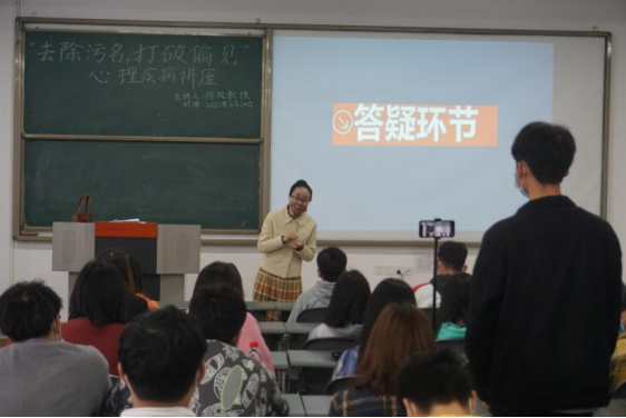 为了普及心理健康知识,引导同学们正确认识心理疾病,友善对待心理疾病患者,3月24日中午,ok138cn太阳集团特邀陈孜教授在教学楼A502开展了以“去除污名 打破偏见”为主题的心理疾病科普讲座。