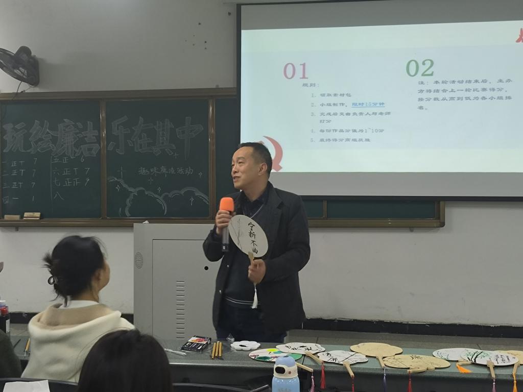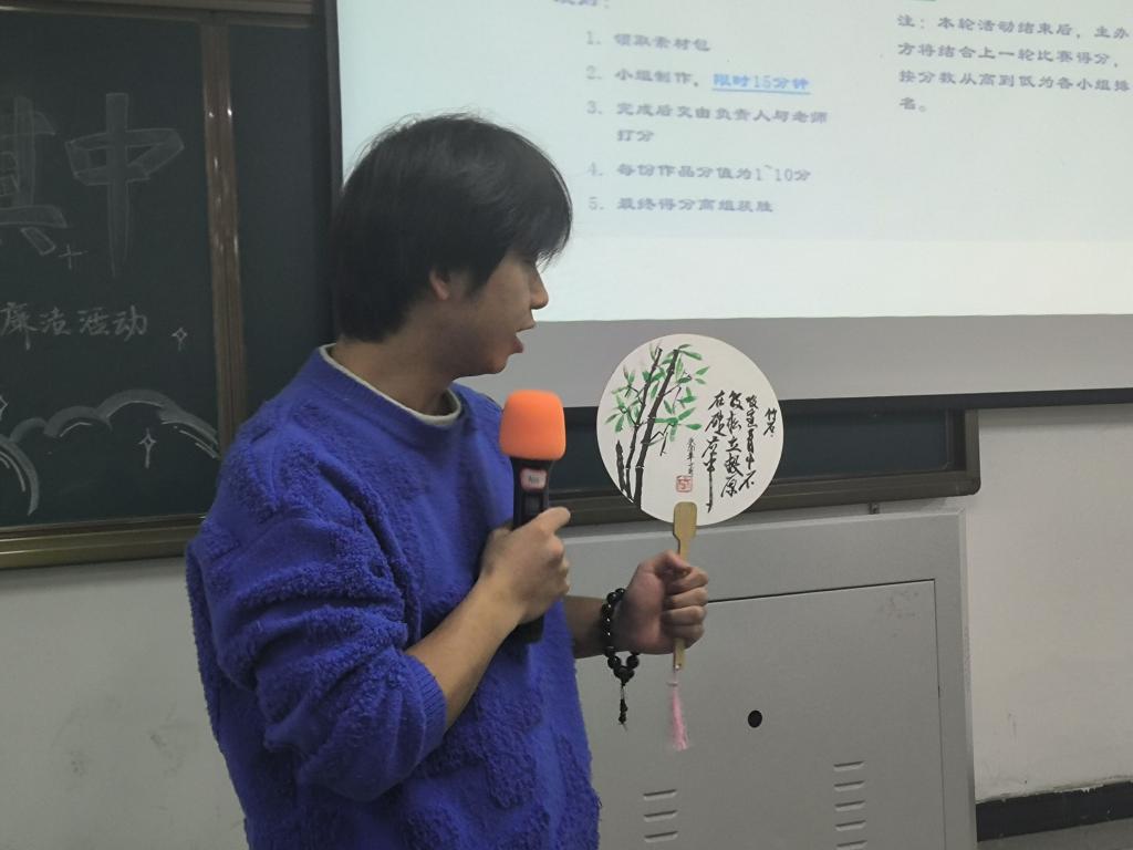 此次廉洁主题教育系列活动分为线上线下两个部分。在“声颂廉洁”的线上活动中,同学们积极投稿经典朗读,以精神饱满的状态踊跃参与,以真挚动人的声音放声朗读,比赛从44个作品中评选优秀作品10项。在“玩绘廉洁,乐在其中”趣味廉洁的线下活动中,趣味抢答环节,32名同学反应迅速,善于思考,积极抢答,场面一度热火朝天;绘制团扇环节,同学们结合自身对廉洁文化的了解,充分发挥创造性与主观能动性,线条与色彩兼具、创意与文化共融,作品元素丰富且精致生动。绘画环节结束后,郑崛村副书记对每一组推选出来的团扇进行了独到的点评并对本次活动进行总结。