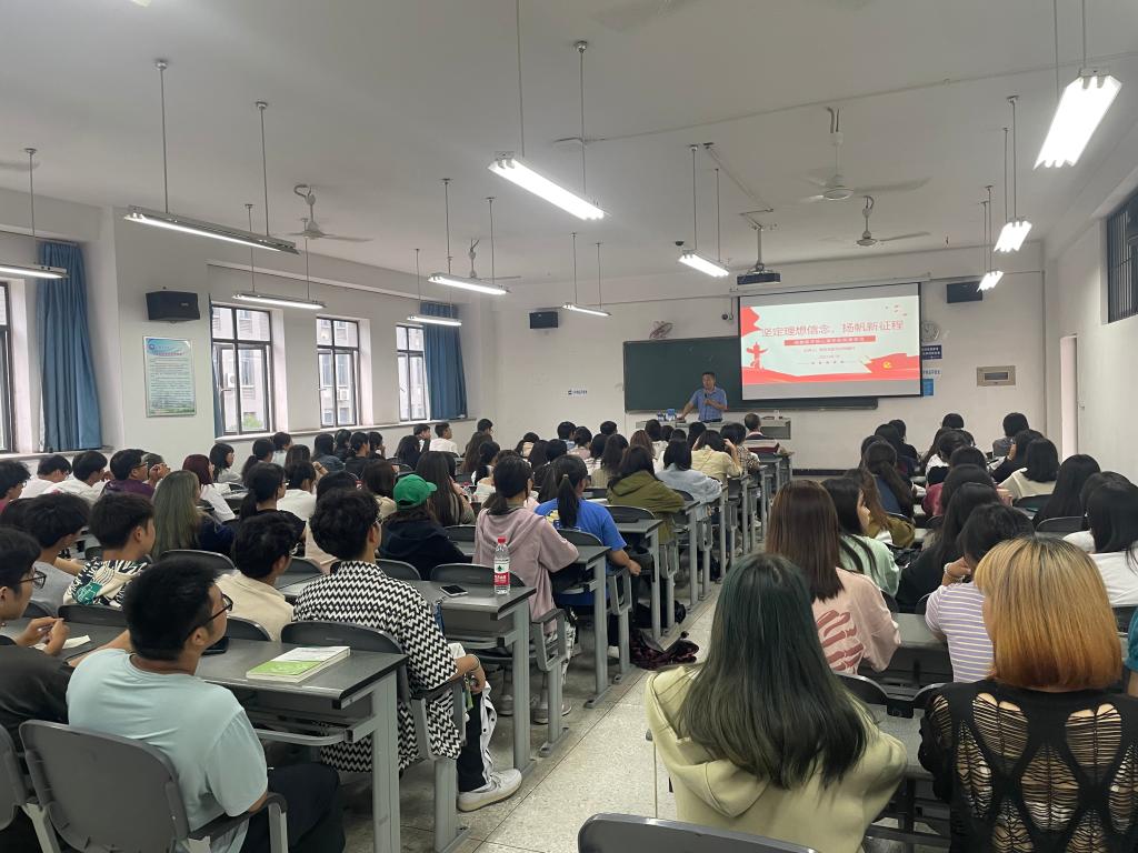 郑崛村以"坚定理想信念,扬帆新征程"为主题向同学们讲述了青年是时代的奋进者、奉献者、开创者,并为青年应该怎么做指明了方向。并结合学习贯彻习近平新时代中国特色社会主义思想主题教育要求,围绕党的光辉历史、党的基础知识、入党动机、如何申请加入中国共产党等教育内容对新生进行入党启蒙教育。