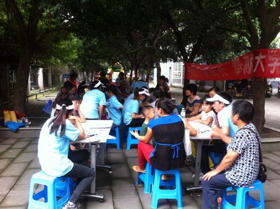 2013年9月14、15日,心理学志愿服务队赴青羊区同德社区与锦江区塔子山社区开展向日葵图书馆、流动儿童“绘画游戏”活动。此次活动由ok138太阳集团古天乐心理学系、向日葵青少年服务中心及当地社区工作人员联合主办。