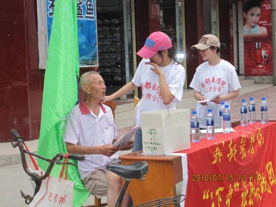 为推进“三新”创建活动,服务世界现代田园城市建设,响应“千人百队科技进村入户”活动主题,在心理学系赵钦副书记和戴冰、孙璐、张惠、郭茂林四位老师的带领下,本系23名学生代表于7月15日至17日深入广汉市高坪镇开展大学生志愿者暑期文化科技卫生“三下乡”社会实践活动。